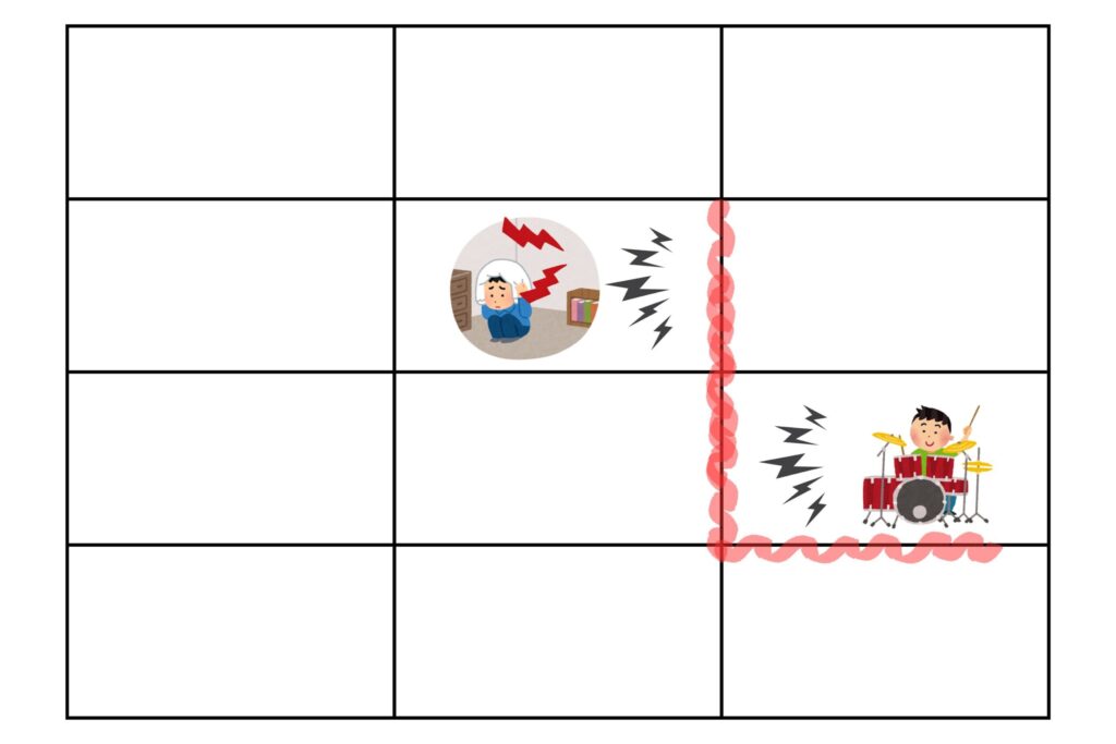 マンションでお隣さんの騒音の苦情を管理会社に伝えたら、お隣さんが空室だったといった事例は少なくありません。固定伝播音に限らずですが、集合住宅では音が複雑に反響・伝播するため、さらに防音対策の難易度が上がります。
