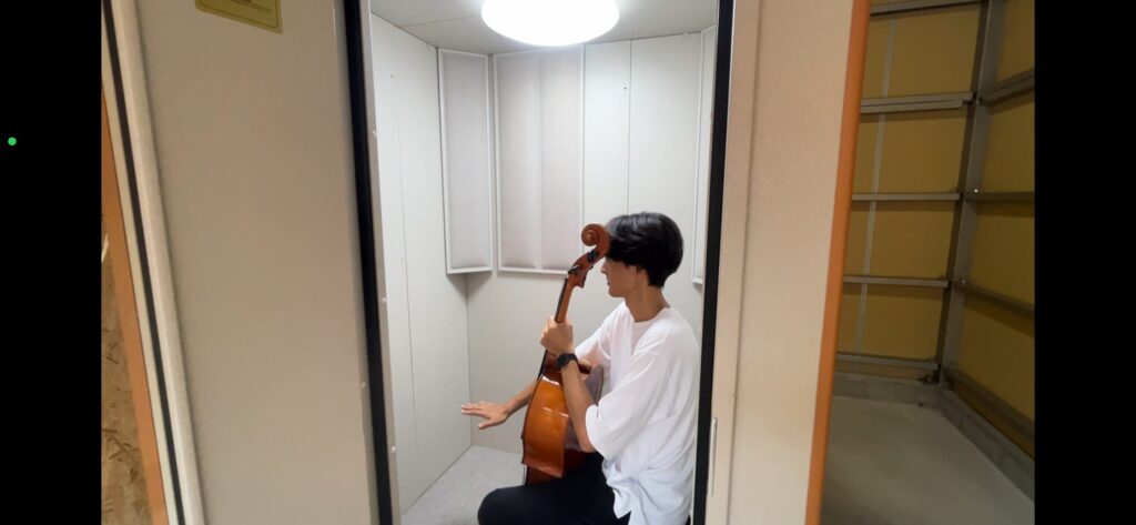 1.2畳でチェロを持ちこんだ際の写真がありますので、こちらも参考になるかと思います。