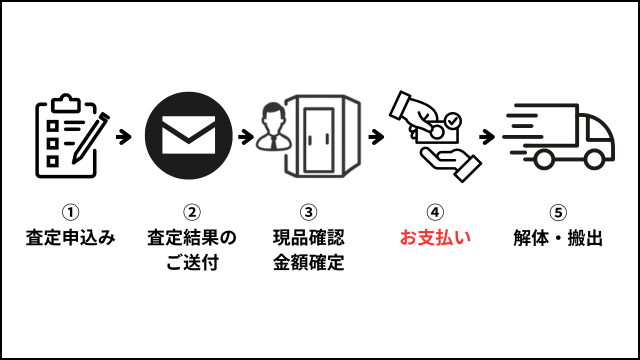 ご指定日時に訪問確認させていただき、最終査定金額の確定を行い、その後引き取り作業をさせていただきます。